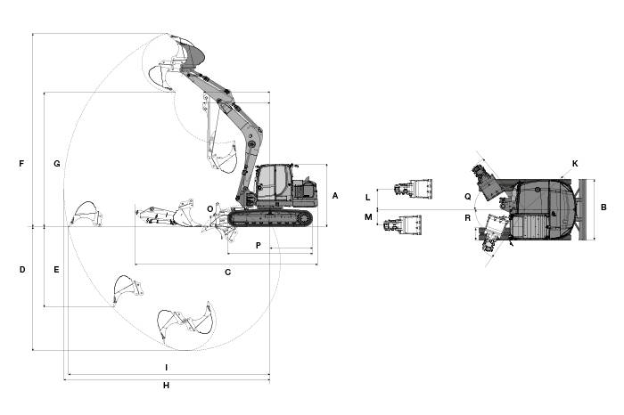 Перемещение стрелы макс. - к середине, ковша право | 850 мм |