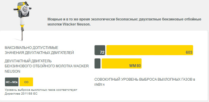 Двухтактный двигатель WM 80 обеспечивает защиту оператора и экологическую безопасность. Уже сегодня его уровень выброса выхлопных газов ниже всех действующих и предполагаемых в будущем ограничений.